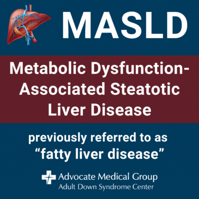 - People with Down syndrome have an increased risk of developing MASLD. Obesity further increases the risk for people with Down syndrome.